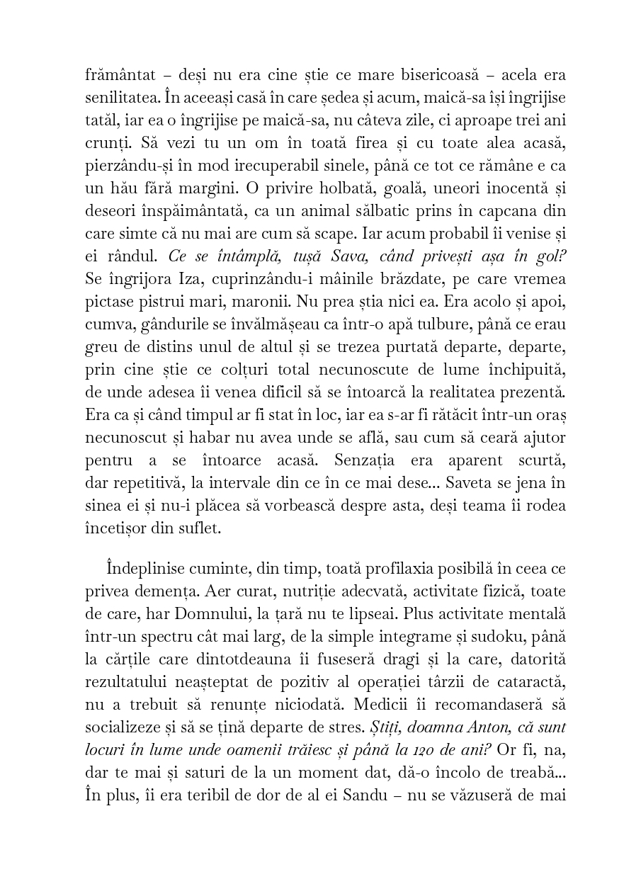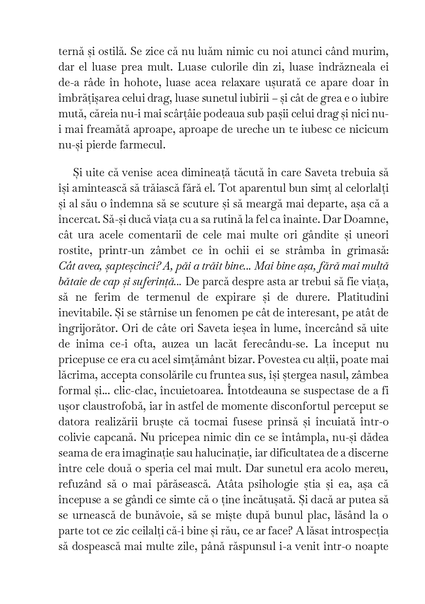 Romanul prezintă un subiect abordat și în alte scrieri, o problemă actuală care preocupă tot mai multe persoane, iar felul în care a fost redată în paginile acestuia, dă dovadă de abilitatea autoarei de a conduce cititorul către un final neașteptat.